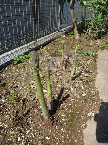アスパラです。こんな感じに生えてくるの知ってました?株が良く育っているのか太いのがどんどん出てきます。今の時期のアスパラが一番おいしいです。
