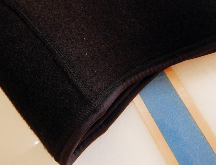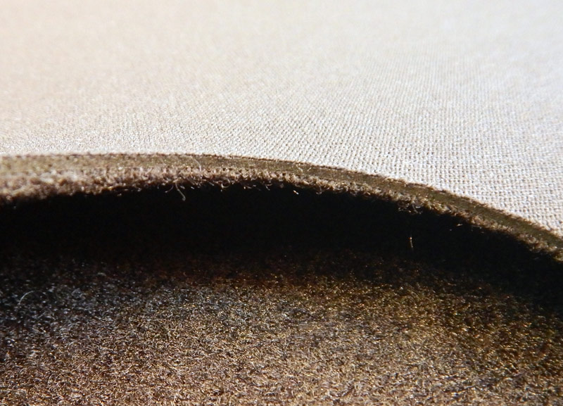 裏地は動くと発熱するプレミアムブラック起毛で、生地は0.7mmの水も風も通さないクロロプレンラバーです。ウェットの内部に入ってしまった冷たい海水を直接肌に触れさせないことは保温に大きな効果があります。