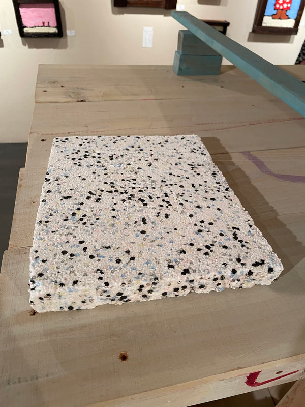 これは、古くなったビーズクッションからのリサイクルで作られたブランクスでシェイプされたボード。