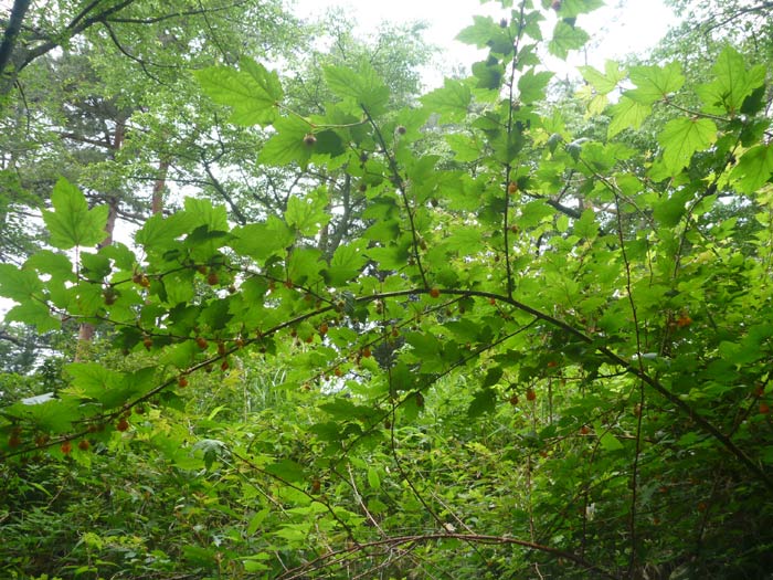 黄色い実。甘すっぱくて元気が出ます。木いちごの実をリスみたいに頬張って、また走ります。