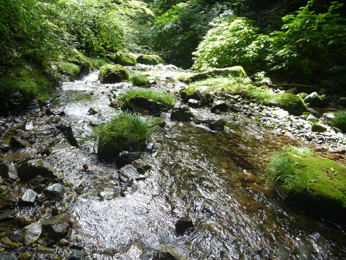 ところどころ、沢に降りられるところがあります。サカナもいて本当に清流といった感じで、渓流釣りをしている人もいました。水が冷たく手気持ちいいです。