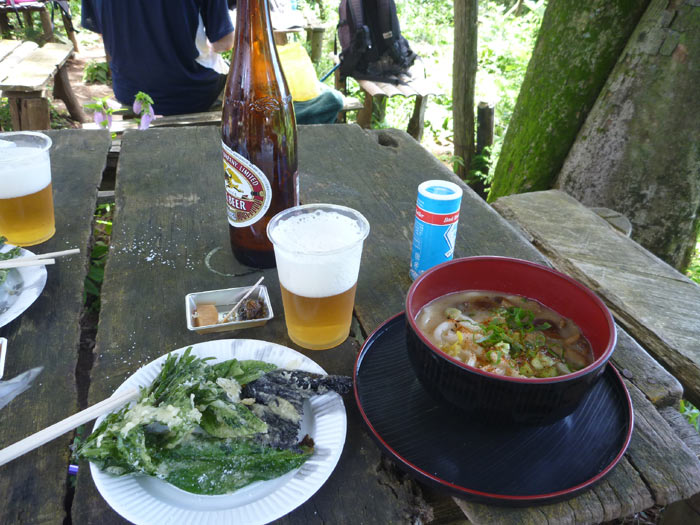 山の葉っぱのてんぷら。塩をたっぷり振ってパリリとかじるとビールが最高です。
