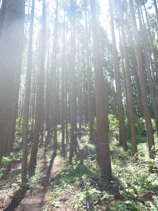 城山からは舗装された日影林道ではなく、その北側の稜線を通るトレイルを下ってみることにしました。最後は川を渡って麓に出る、結構マニアックなルートです。