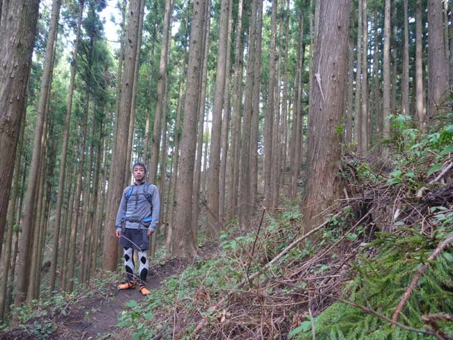 山頂からは尾根伝いに緩い登りと下りの繰り返し。少し気温が下がった冷たい空気を吸いながら、土や落ち葉の感触を楽しんでゆっくり走るのが最高に気持ちいいんです。
