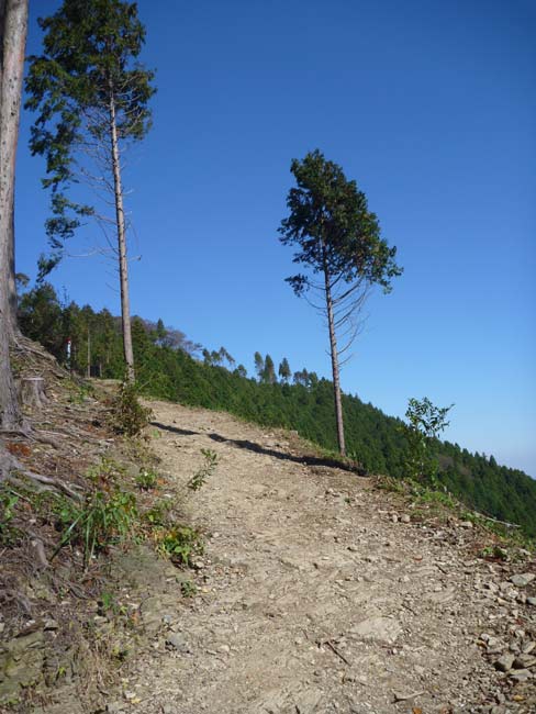 道は急に傾斜を増してきます。尾根になっているところをまっすぐ登っていきます。結構急な登りです。