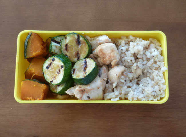 そして、食べ物も大切。今日のお弁当シリーズです。鶏ムネ肉とズッキーニのハーブ焼きに焼いたカボチャに玄米ご飯。