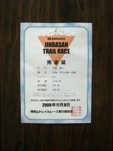 完走証です。2300人中(実際の出走はもうすこし少なかったようです。)779位でした。完走は出来ましたが、多いに勉強になったレースでした。