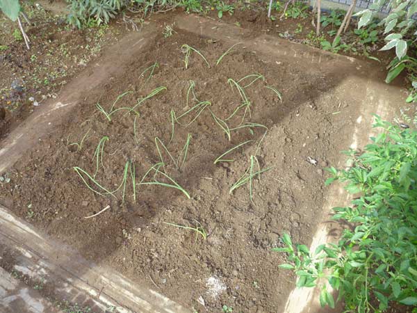 昨年の秋に植えたこいつは、だいぶタマネギらしくなってきました。去年の10月にはこんなにヒョロヒョロだったんです。