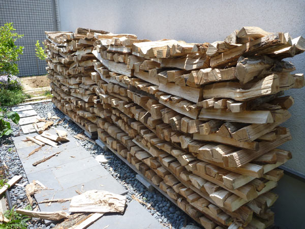 昨日の定休日ほぼ一日かけて、割り終わった薪を積み上げておりました。斧をふるってバンバン割っていくのは楽しい作業です。でも割った薪はきちんと積み上げて乾燥させなければいけません。