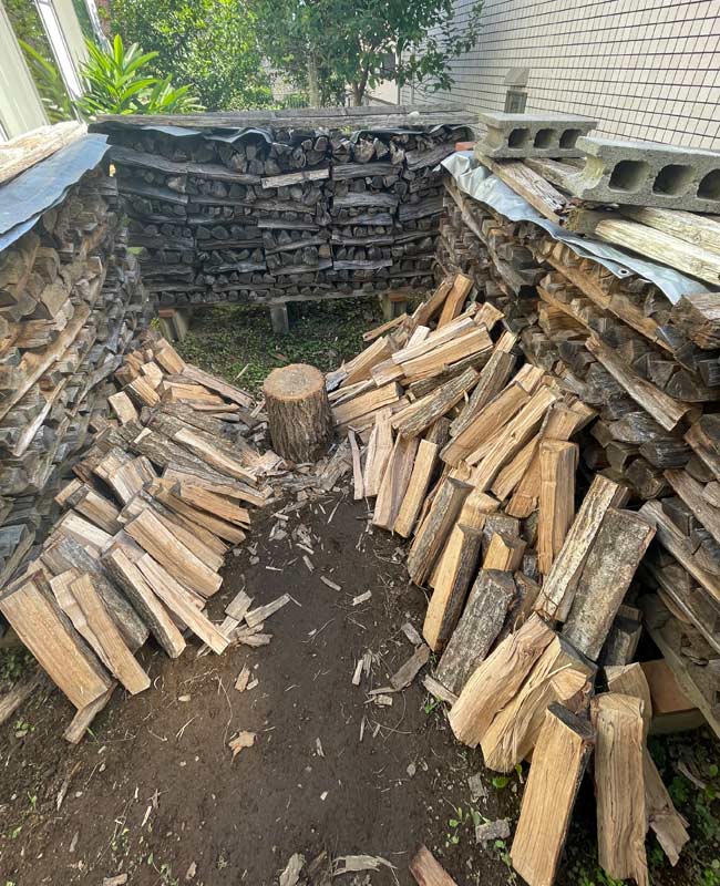 ちなみにこの状態のまま、上部に雨除けのカバーを乗せて約三年乾燥させます。使うのは2019年の冬から、2020年にかけて。ありゃ、もう東京オリンピックの年じゃないですか。