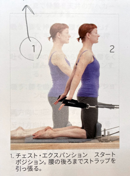 先日のリフォーマーの講習でこのエクササイズが出てきました。リフォーマーに乗ると、下の台が動くので地面よりもコントロールが難しくなります。