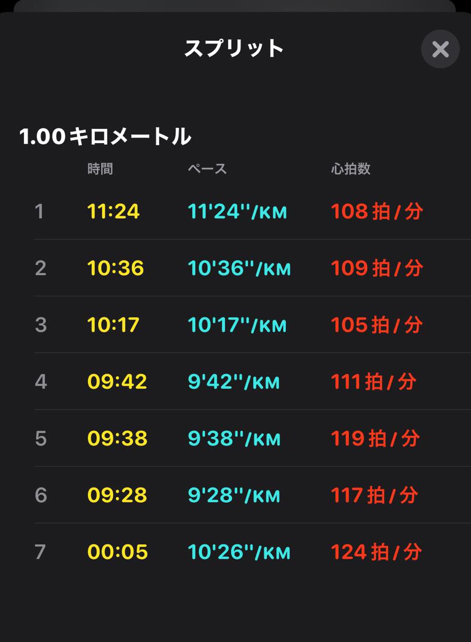 10分切るのは難しいんだろうなあと思っていたら、最後の1キロは9分30秒切っていました。結構ペース上げられるもんです。
