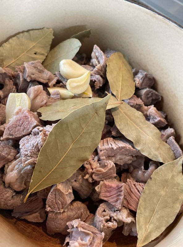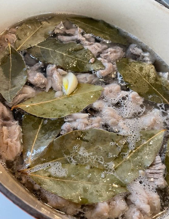 食べ物だって同じです。本当に効くのかどうかは分かりませんが、とりあえずやってみるのです。腰や関節に良いとされる牛スジに、痛みを緩和すると言われるローリエをたっぷり入れて牛スジ煮込みです。