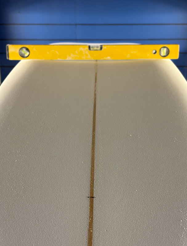 今回の8’4”は、初期モデルに近いロッカーを復刻したブランクスを使い、さらにアウトラインを1/2インチ細くしてみました。全体的にシャープなイメージになっています。