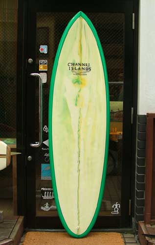 チャネルアイランドのシングルフィンです。70年代にアルメリックで有名になったトライプレーンハルのボトムが調子良さそうで、最近シングルマニア(笑)の私も乗ってみたい1本です。