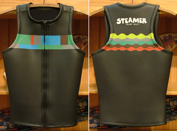 お絵かきがすっかり楽しくなってしまって、ベストにペイントしてみました。STEAMERウェットスーツと勝手にコラボです。
