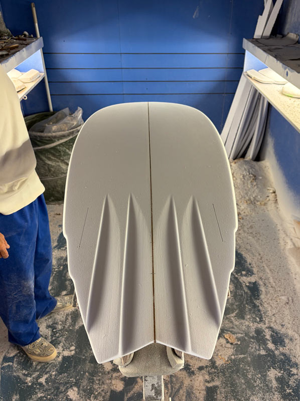 ラウンドテールは過去に何本も作っているので、アウトラインは問題ありませんが今回はいつものトライではなくて、ツインフィン。それにディープチャネルです。