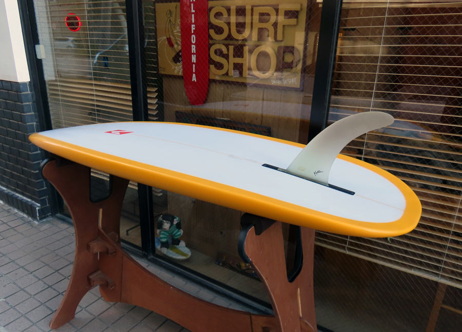 この角度から見るとノーズライダーのようにも見えてしまいますが、ニーボードです。遠近感がおかしくなりそうですが、レングスは5’4”。