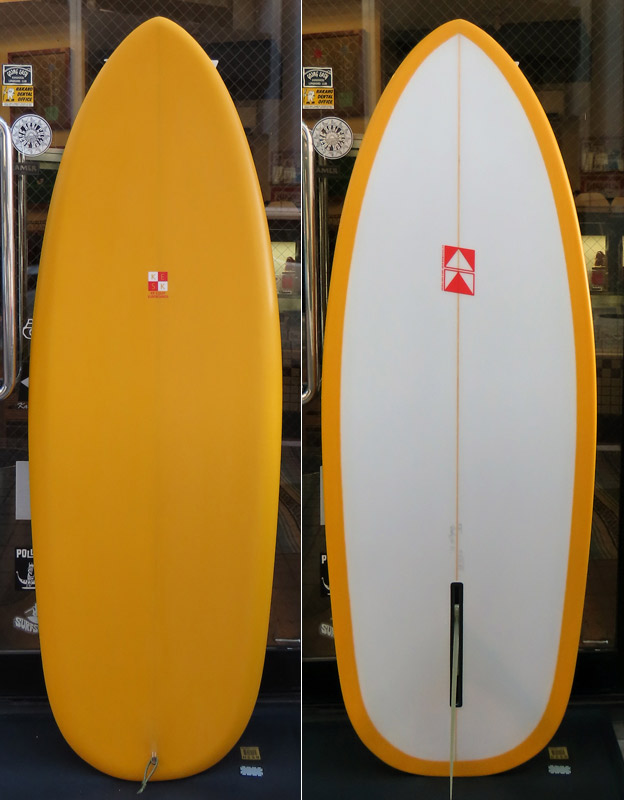 ちょうど私が乗っているシングルフィンがそうです。あのボードのトライフィン版のような感じです。ニーボードは大体が5.6~5.8くらいのレンジで作っていますが、今回のようなラインアップに無い形もご相談に乗ります。