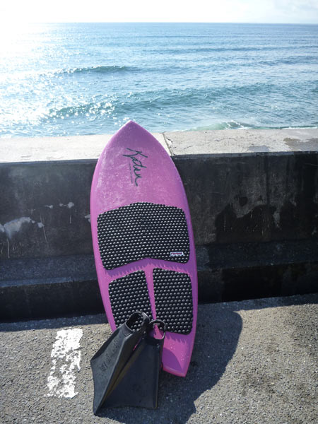 しかし、このMINI クアッドいいです。ワイドノーズはパドル楽ちんですし、波のキャッチも速いです。コンケーブ基調のボトムとクアッドフィンは、ひたすら滑らかにすべってくれます。