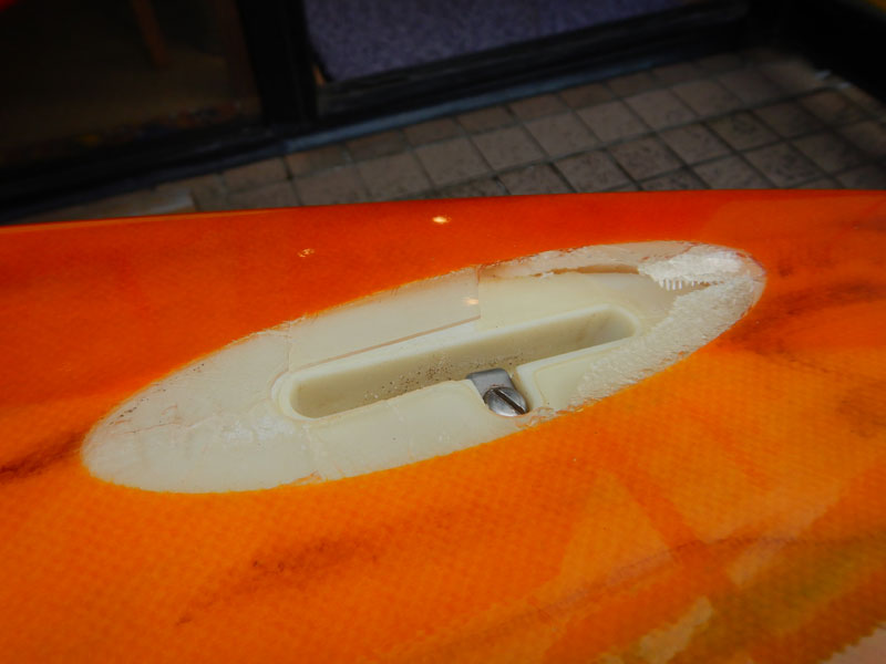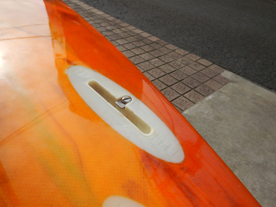 これがベースが破損してしまっていたら、修復不可能となってしまうところでした。ロックボックスのフィンシステムは、かつてクリステンソンのフィッシュや、C-BUCKET、フィッシュシモンなどでたくさん作りましたが、今ではフィンやフィンベースなどの部材は、手に入りませんので、失くさないよう壊さないよう、ご用心ください。