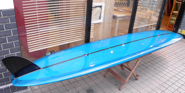 クラシックボードというと、なんでもノーズコンケーブが入っているものと思われている向きもあるらしいですが、コンケーブが無いロングボードが滑る感触は気持ちいいものです。滑り出しも気持ちいいのです。