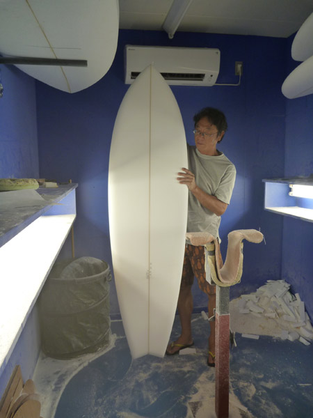 そんなサーフィンは一番難しそうですが、カツさんがシェイプするこのボードを見ているとそんなことを考えてしまいます。