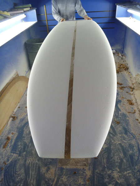 さて、先週のブログで入荷しました!とご紹介したロングボードの特注フォーム。さっそくカツさんがシェイプしてくれました。
