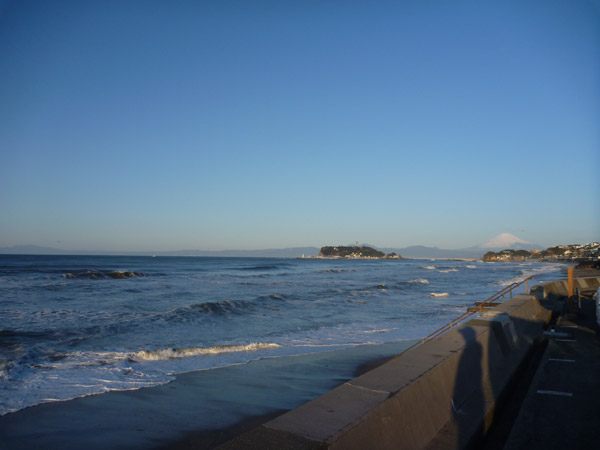 朝6時、七里ガ浜。落ちついているようにも見えますが、オーバーヘッドのワイドなセットがポンポンポンと入ってきます。あまり悩まずにもう東のリーフポイントへ移動しました。富士山がきれいです。