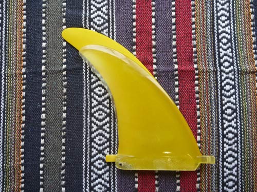 ずっと、70年代風の三角形っぽい形をしたフィンをつけて使っていたので、レイクが効いた少し細身で長いものと換えて乗ってみようと思います。