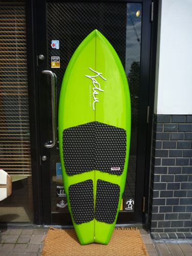 新しいフィンはホームページにも出ていますがスキップ・フライの8.5インチ(グリーンの8.5は私が使っちゃったのでSOLDです)。ベースはいままで使っていたものと同じですが形が全体的に細長く高く(深く)なってます。