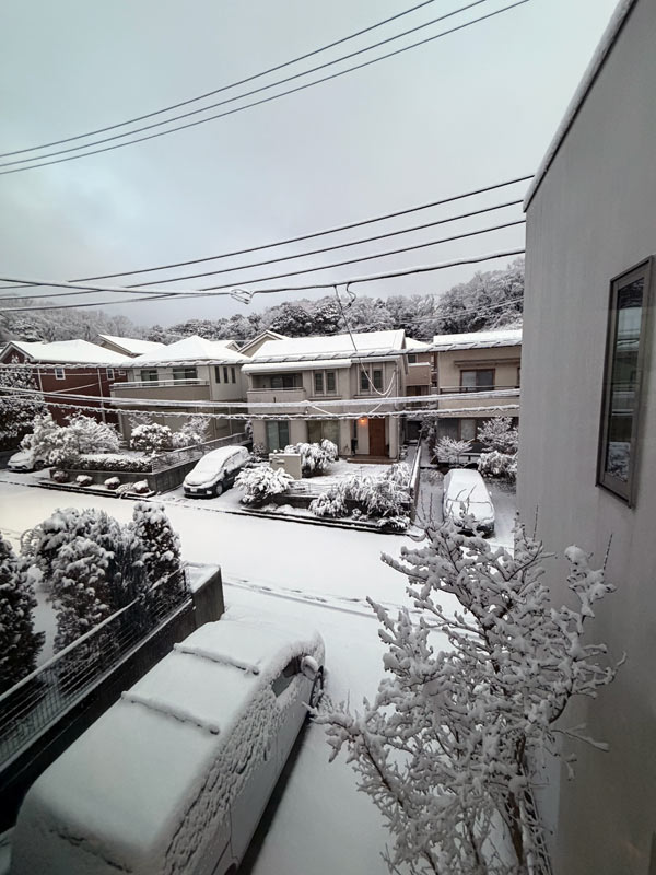 朝起きたら、外は真っ白。放っておくと今度は凍結して危険な状態になるのがいつもなので、朝食を済ませて早速雪かきです。