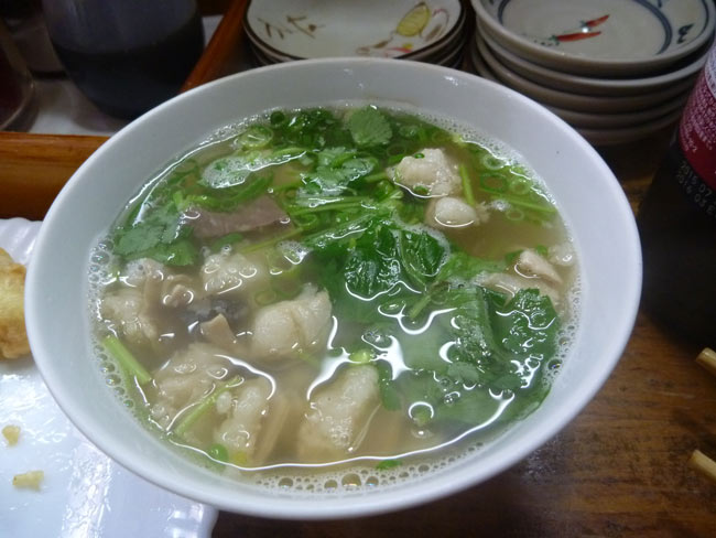 久しぶりの関西圏のうどんにテンションあがりますが、今回の最大の出会いはこのおつゆ。一見、けんちん汁のようですが、そば米汁といって、野菜や鶏肉と一緒に炊いたそばの実の雑炊です。徳島の郷土料理だということですが、これが旨いのです。