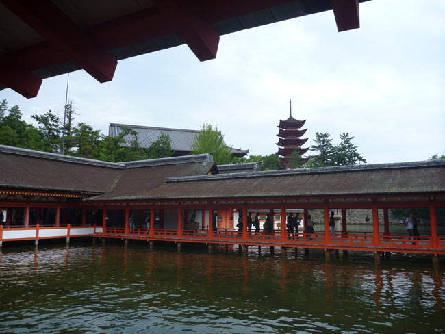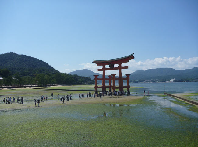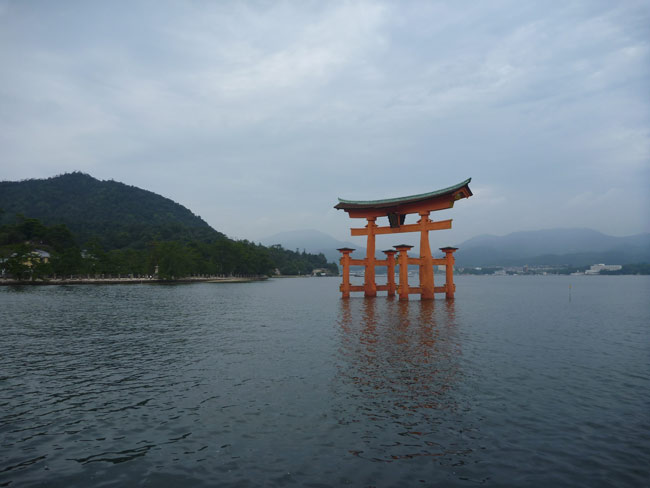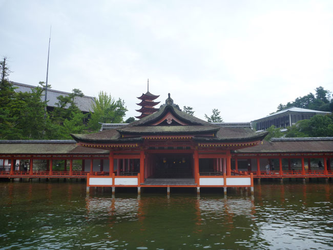 そんな訳で昼前には広島駅に到着。そのまま世界遺産の厳島神社へ向かいます。宮島です。当たり前ですが、道の名前は宮島街道、駅も宮島口、焼き物は宮島焼き、その他いたるところに宮島の文字に、人々の口からも「みやじま」の声が聞こえてきてなんとなく落ち着きません。