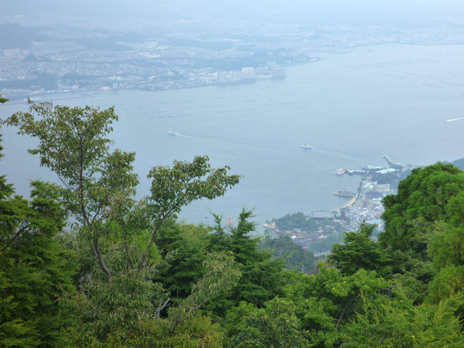 神社の後ろには弥山(みせん)という標高500メートルちょっとの山がそびえています。お宮の森として古来から手付かずの森が残っていて動植物にはこの島の固有種がいるそうです。