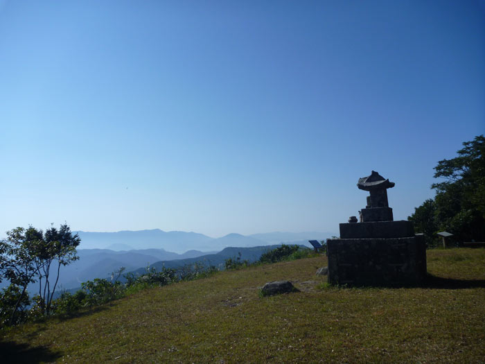登ること約30分。急にすっぽりと視界が開け、あっけなく山頂に到着です。山頂のこのほこらは見覚えあります。遠足でよく弁当を食べた場所です。
