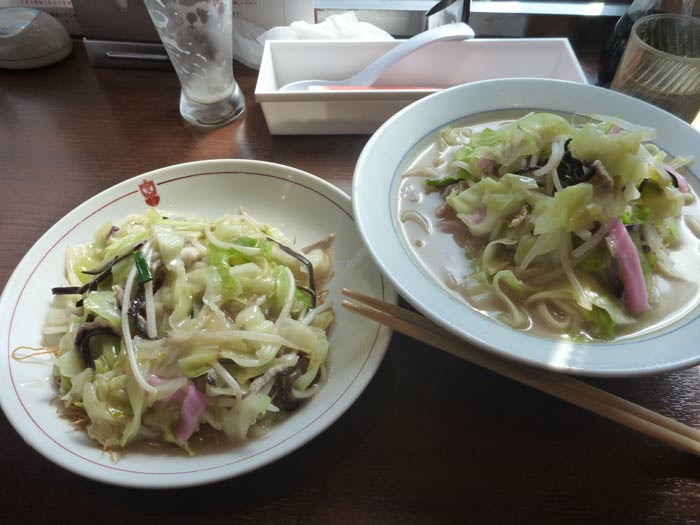 チャンポンとハーフサイズの皿うどん。