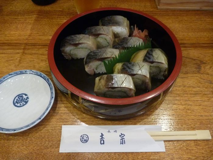 食べ物ついでに、長崎の老舗「吉宗」の茶碗蒸しと鯖のばってら。
