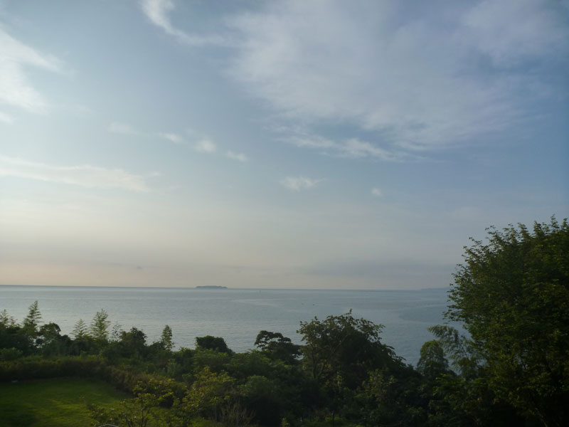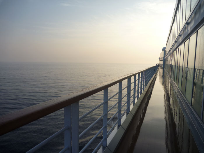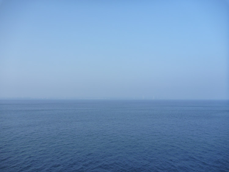佐世保は夜10時すぎに出航。翌朝起きて、ゆっくり朝食をとってデッキに出てみると、朝霧に済州島がぼんやりと見えています。