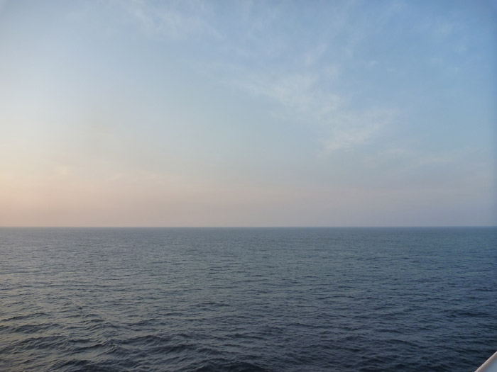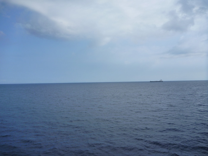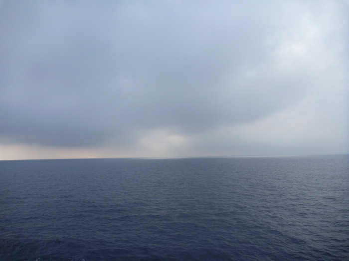 雲がどんどん消えていって、水平線と遠くを滑る船がくっきりと見えてきます。自分のまわりがすべて海だと、遠くに船を見つけただけでなんとなく嬉しくなります。