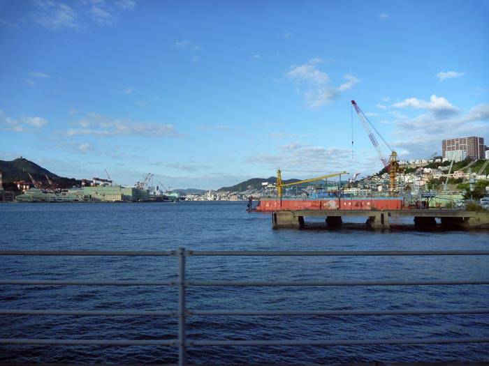 翌日の午後4時、佐世保港へ入港。久しぶりの佐世保。しかも海から近づいて行きます。SSKの造船所のクレーンがなんだか懐かしい。佐世保は日本の西の端の軍港の街。かつて祖父母が住んでいたので何度も遊びに来ました。
