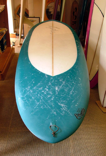 調子いいボードを眺めて、さすってまた眺めているとなんとなくうれしくなってくるのは私だけじゃないと思います。私は昨日からこのハルシェイプで作ってもらったミニがそれです。ノーズライダー並みの幅広いノーズを持つスタビーな外観。タカヤマさんのインザピンクというノーズライダーのノーズ幅は確か21インチだと聞いた覚えがありますが、このミニは19インチ。6.8の長さなのに2インチ細いだけ。センターは22インチ。まさにスタビーとはミニのことじゃないかと思います。