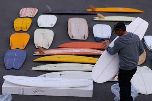 ショップのオープンは2001年。それ以来、ロングボードをベースに、フィッシュ、ボンザー、シングルフィン、ニーボード、パイポとさまざまな種類のサーフボードを作り、試してきました。