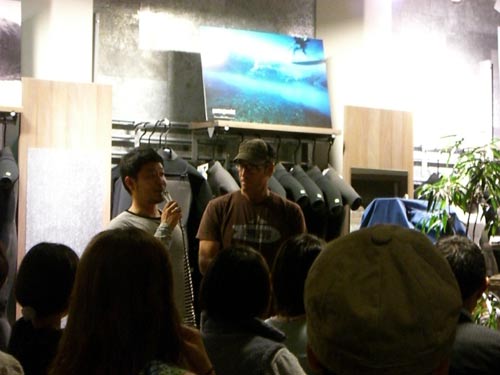 昨夜はフィッシュ・フライジャパン2009の開催に合わせ、サンディエゴから初来日(だったんですね~)したリチャード・ケンヴィン氏のHYDRODYNAMICAのワークショップに参加してきました。ケンヴィンさんと一緒にツインピンフィッシュで有名なイーライ・ミランドンくんも初来日です。イーライくんは日本に着くなり、渋谷109に連れて行かれかなりビビったようで「crazy」と連発しておりました。東急ハンズは気に入ったそうです。「日本には素敵なところがたくさんあるから絶対気に入るよ」となぐさめてあげましたが、なんだか素朴な感じがカワイかったです。