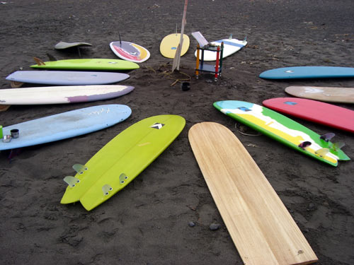 ショップのオープンは2001年。それ以来、ロングボードをベースに、フィッシュ、ボンザー、シングルフィン、ニーボード、パイポとさまざまな種類のサーフボードを作り、試してきました。