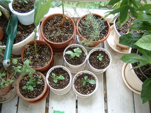 手前の小さい葉っぱはキーライム。カクテルに使ったあとの種を蒔いたら芽がでてきました。16~7年前に行ったマイアミとバハマを思い出します。