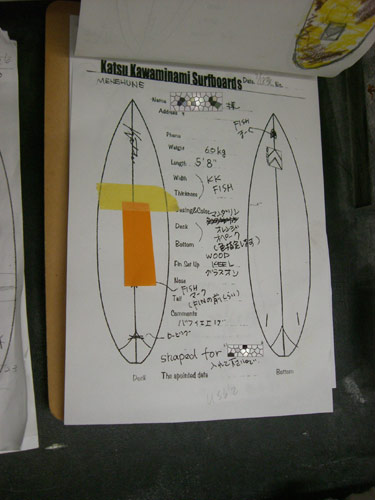 昨日からなんとなくホントの梅雨明け気分。週明けには台風からのうねりも届きそうな気配です。HさんのKKフィッシュ、色指定してきました。ちょっと赤っぽく写っちゃってますが、きれいなミカン色オペークになると思います。