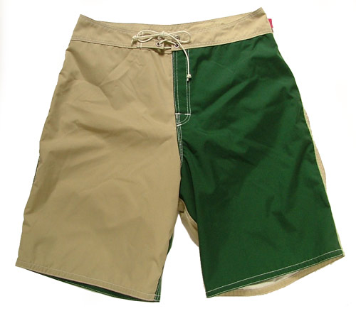 パルメザンのボードコレクション、コットンタイプの生地。ベージュとダークグリーン レングス2インチ長めの31インチです。