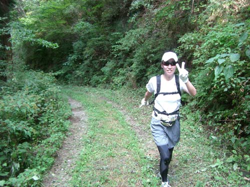 トレイルにはいろうとした途端に通行禁止のゲートが…(もう入っちゃってますが…)実は、どうしたらいいの~と地図を持ってウロウロしていたら、近所のおっちゃんが、歩いてなら入ってもいいんだよーと教えてくれたので遠慮なくゲートをくぐって入らせてもらいました。おっちゃんは「レース応援してるからな~」と手を振ってくれました(笑)