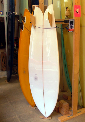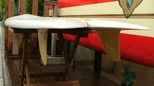 それでやっぱりシングルがいいなあと考えていたところにこのトライプレーンですから、迷わず作っていただくことにしました。目下サイズで悩み中です。7フィート代後半くらいか?